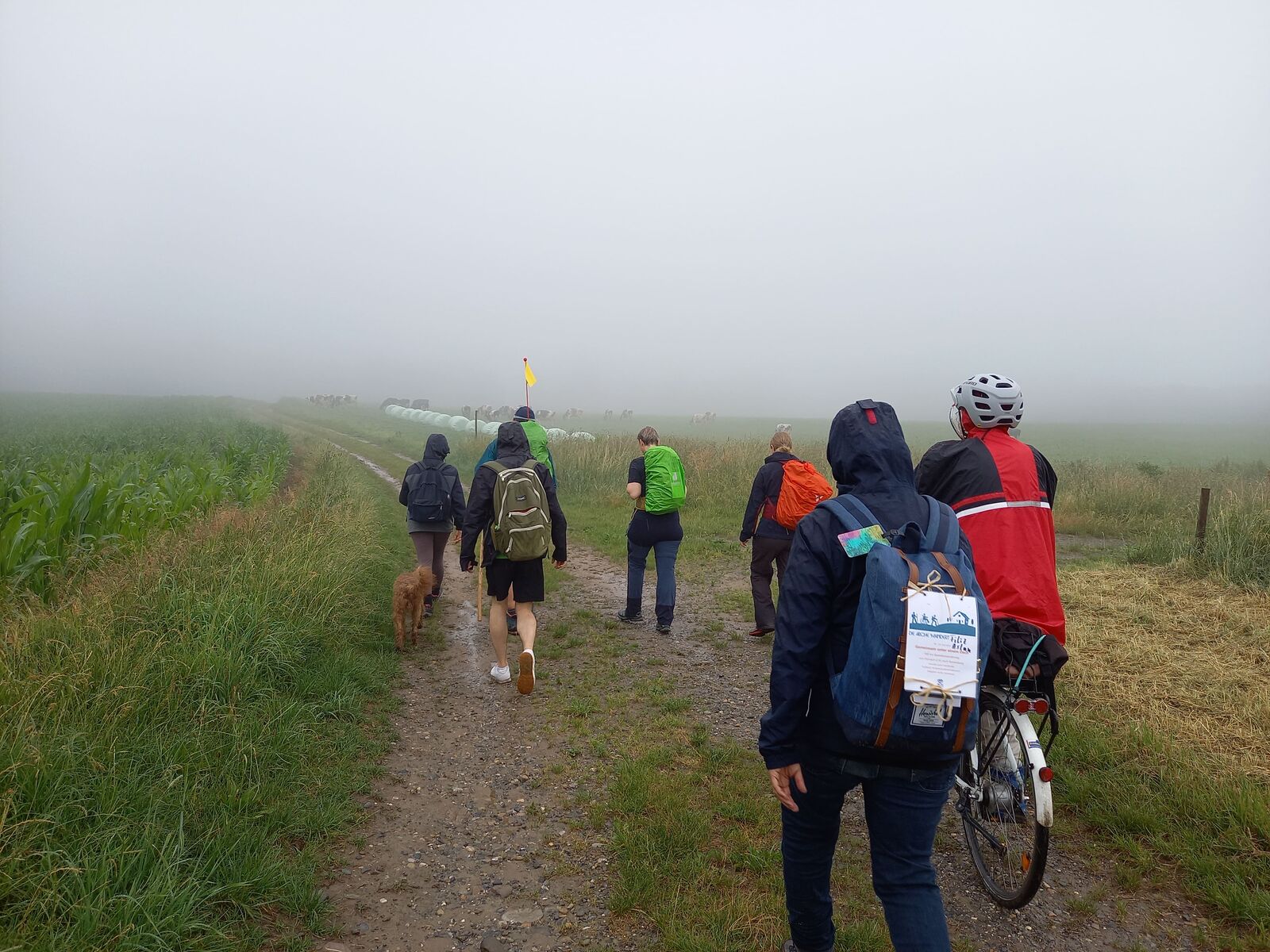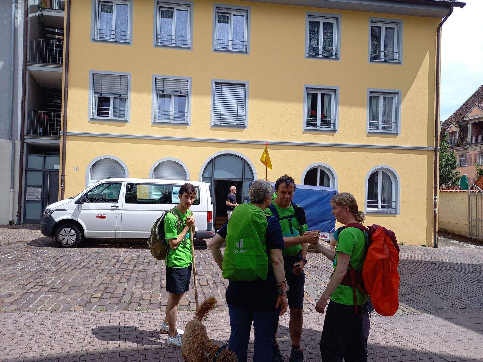 Der sanfte Sommer-Regen begleitete uns den ganzen Tag. Für die Mittagsrast bot uns eine Kirche Schutz. Bis wir das Ziel Radolfzell am Bodensee erreichten, hatte der Regen aufgehört und der Sonne Platz gemacht.